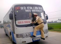 Θα το σκεφτεί πολύ την επόμενη φορά που θα θελήσει να παρανομήσει ο οδηγός του λεωφορείου με τους 39 επιβάτες, που αρνήθηκε να σταματήσει σε σήμα του Ανθυπαστυνόμου Νάγιεν Μαν Παν, στο Βιετνάμ......Το βίντεο τραβήχτηκε από το κινητό συναδέλφου του αστυνομικού που προπορευόταν. Τελικά ο οδηγός σταμάτησε περίπου 1 χλμ. αργότερα...και απεδείχθη ότι όχι μόνο δεν είχε χαρτιά, αλλά απελευθερώθηκε από τις φυλακές το 2010, οπού εξέτισε ποινή για θα νατηφόρο ατύχημα που προκάλεσε!!